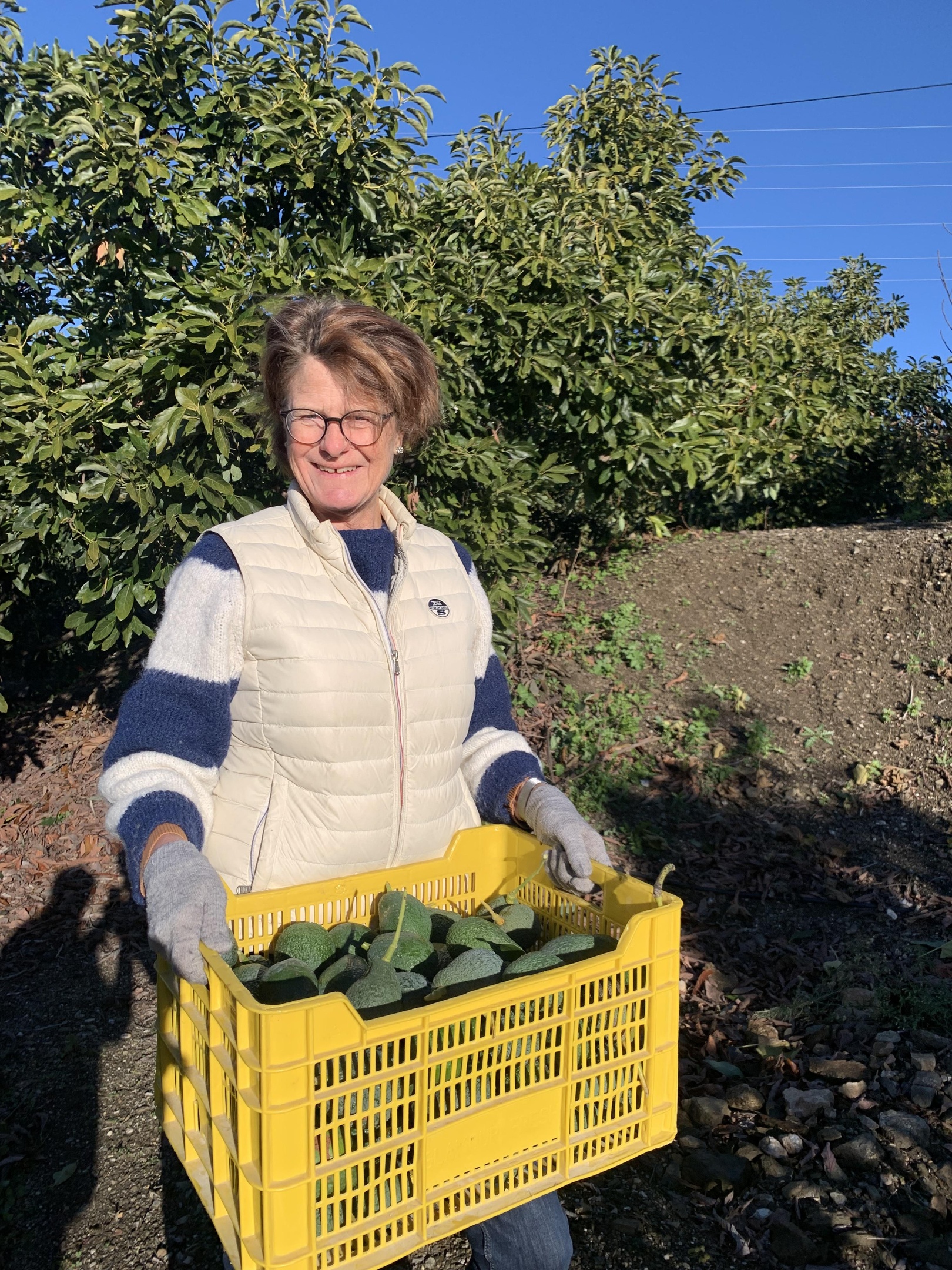 Först på säsongen i oktober kommer Fuerte och Bacon, som kännetecknas av sitt krämiga kött och tunna, släta skal. I november börjar våra Hass bli mogna. Dessa är, med sitt tjockare och skrovliga skal, tåligare. Vi brukar kunna plocka Hass fram till februari. Ett kvalitetstecken, om frukten (eller rättare sagt bären) är korrekt plockad, är att skaftet sitter kvar.